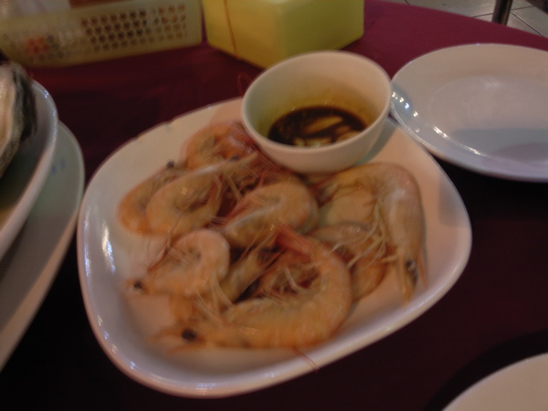 エビのソテー。ニンニク醤油みたいなのつけて