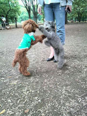 2匹とも、とっても楽しそうに30分くらい立ちっぱなしのバトルをしていました。