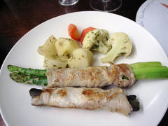付け合わせは温野菜(白ワインとコンソメの味をのせて)