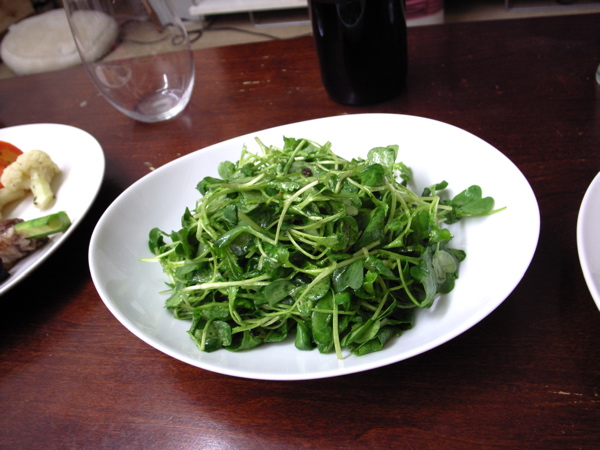 それと、うちの旦那様お得意のつまみ菜のサラダ (味付けは塩とオリーブオイルのみ)