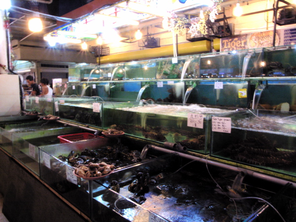 大きな生簀が大量に並んでいて、そこから好きなシーフードをチョイスして